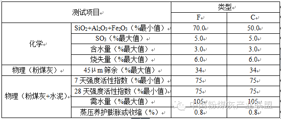 美国粉煤灰标准ASTM C618-12a将粉煤灰分为两类F型和C型,F型粉煤灰是由无烟煤和烟煤燃烧产生的,C型粉煤灰是由褐煤和半烟煤燃烧产生的,并且C型粉煤灰中比F型的CaO含量要高,就是通常我们所说的低钙灰和高钙灰。美国粉煤灰标准也没有将混凝土掺合料和水泥混合材区分开,其他指标与中国粉煤灰标准有些类似,增加了7天活性指数及硅铝铁值的要求,三氧化硫和含水量要求相对较低。