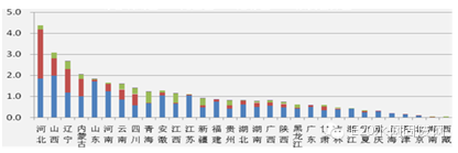 我国工业固废产量废物产量的地区分布,哪个地方最多?就是雾霾产生量最大的地区。我们国家工业固废产出,有我们国家非常明显的特点。