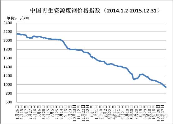 2015年全年废钢市场表现为弱势运行,价格易跌难涨,成交放缓。中国再生资源废钢价格指数1月4日为1628元/吨,3月24日该指数为1463元/吨,累计下跌165元,跌幅10%。