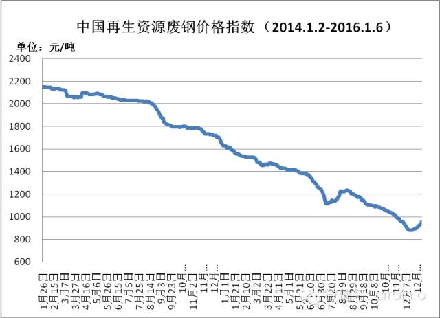 中国再生资源废钢价格指数1月份是1628元/吨,年底下降至913元/吨,全年废铝价格指数下跌715元左右,跌幅43.9%。
