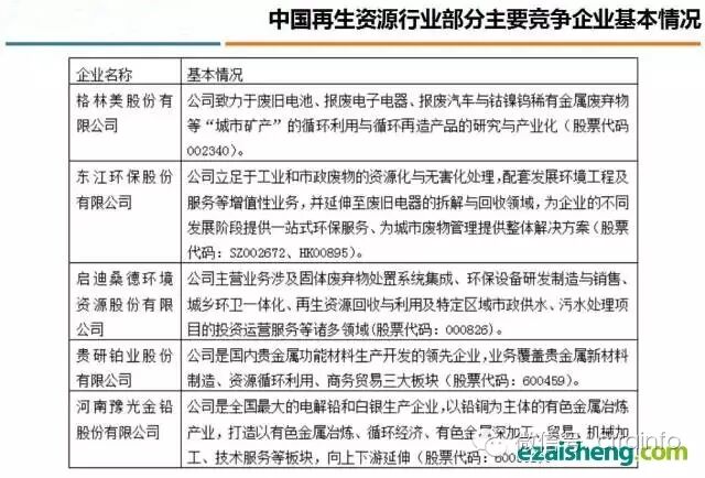 三、中国再生资源竞争企业分析